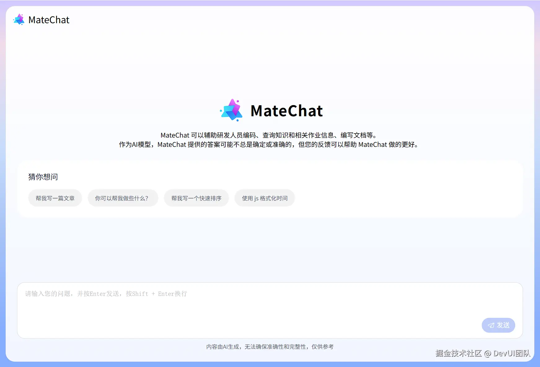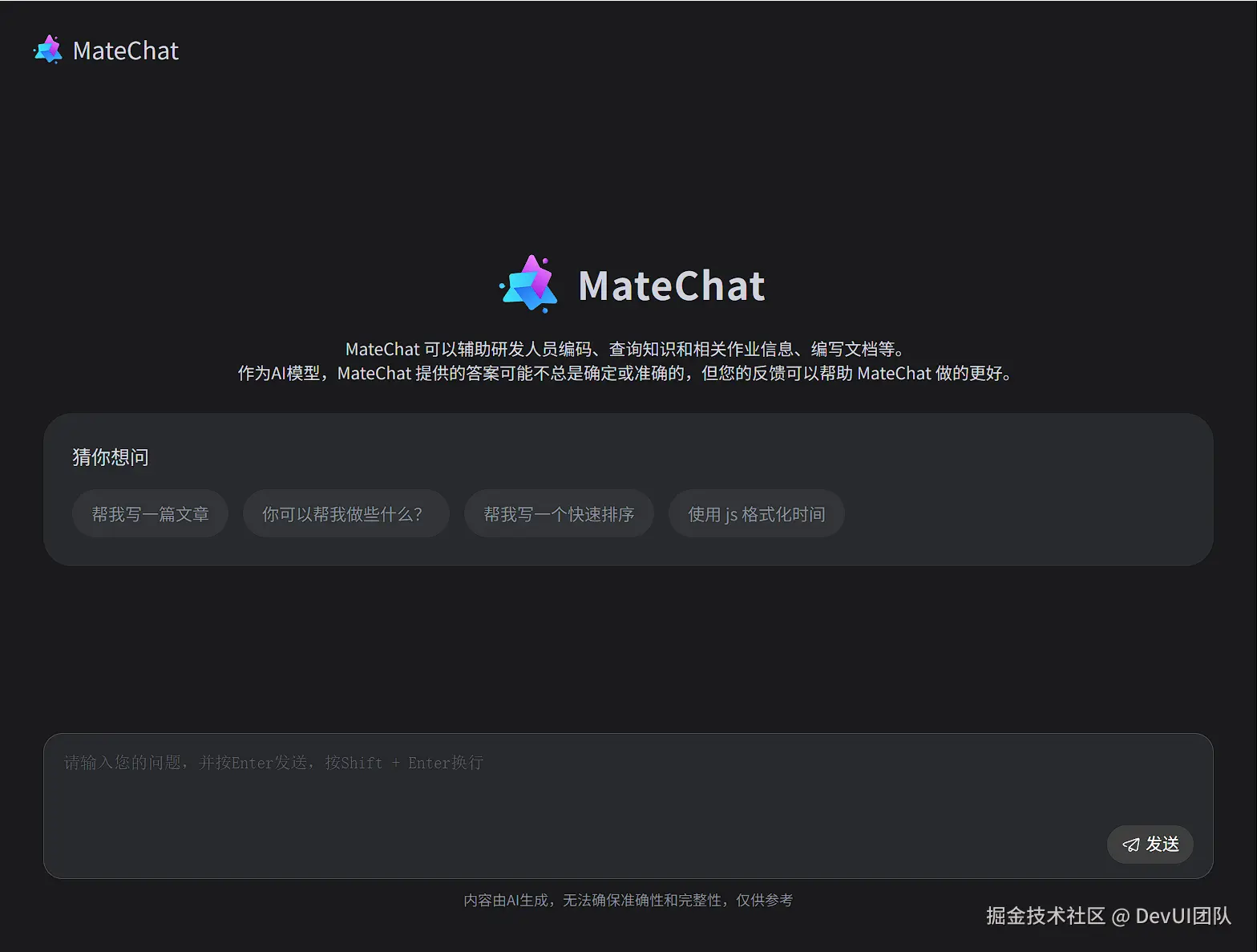 作为AI模型,MateChat 提供的答案可能不总是确定或准确的,但您的反馈可以帮助 MateChat