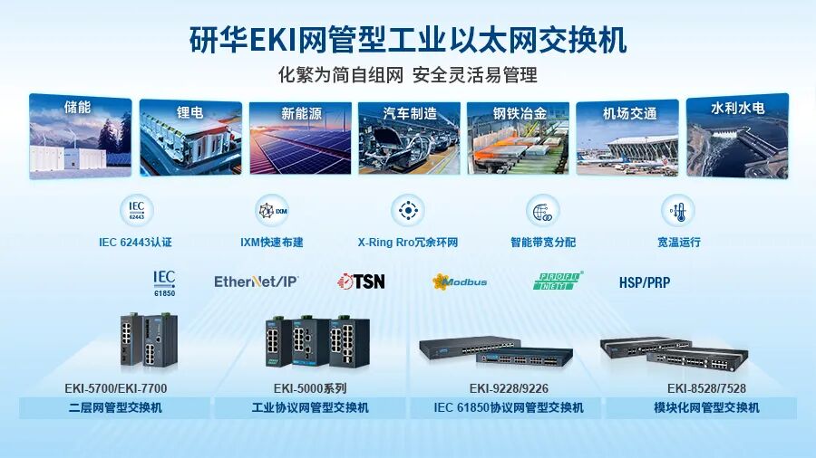 事实上,作为工业通讯领域多年的深耕者,研华提供了覆盖全场景的工业以太网交换机产品矩阵:从即插即用的非网管交换机到支持多协议的网管型交换机,满足不同层级智能制造对实时通讯的需求。