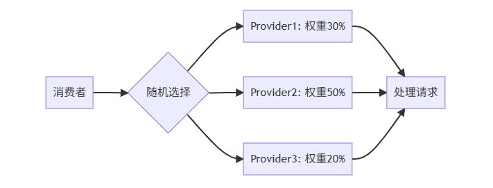 随机策略 是Dubbo的默认策略,它按照权重进行随机选择。权重越高的提供者,被选中的概率越大。