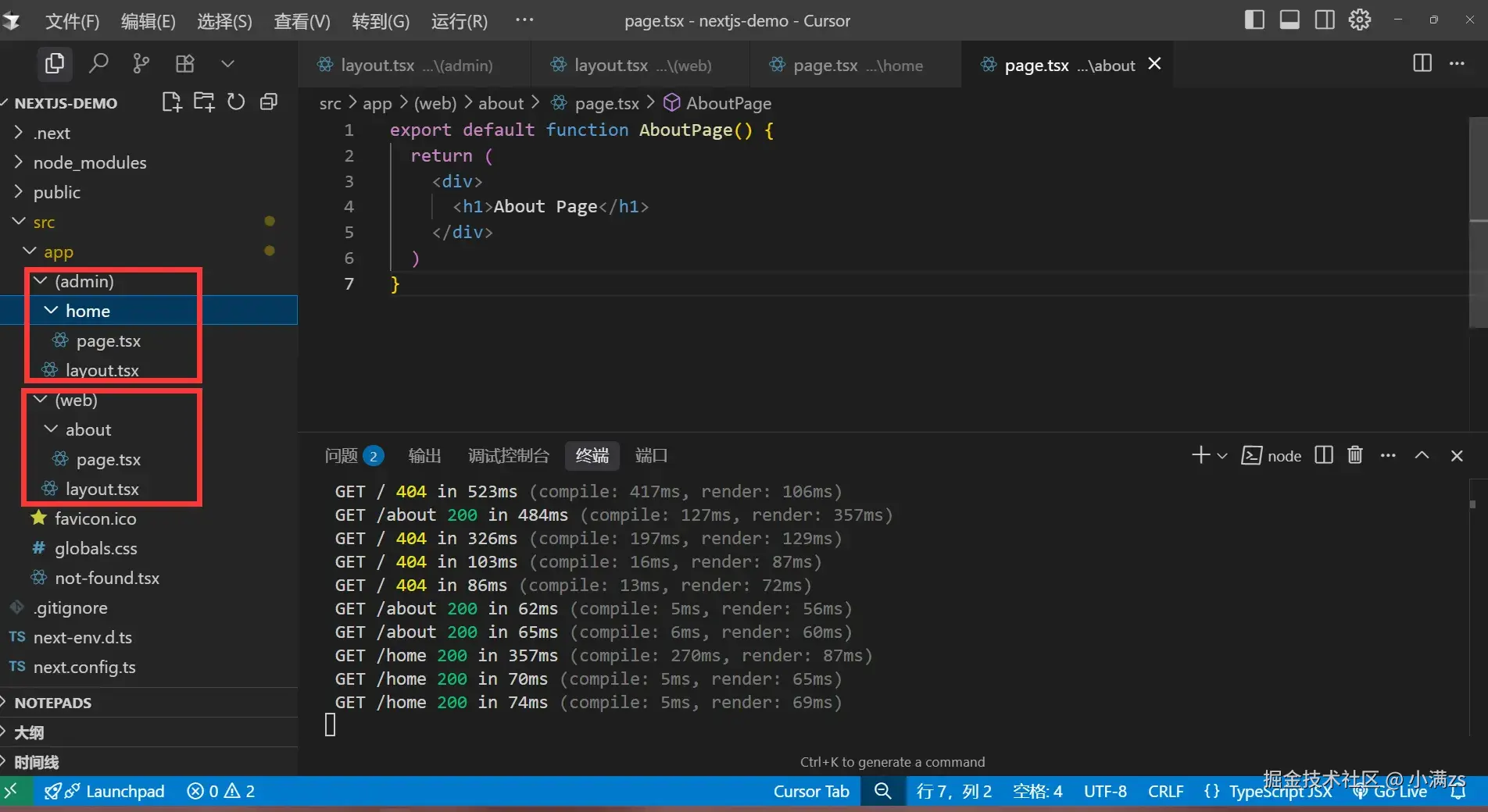app目录下的layout.tsx文件删除 - 在每组的目录下创建