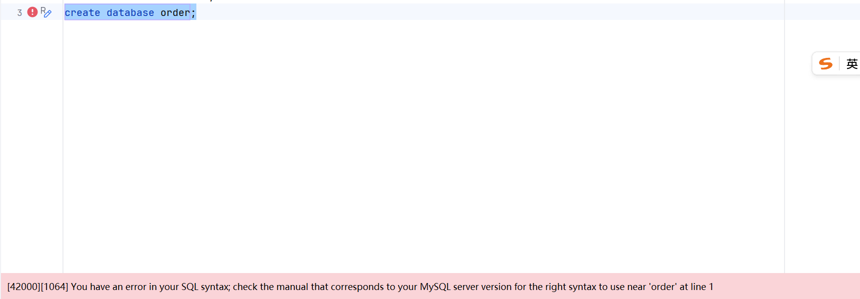 创建的数据库的名字不能和SQL的关键字重合