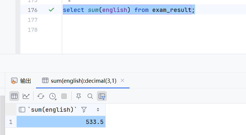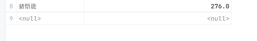 注意在sum里面,就算里面有null---》不会计算这个,自动忽略了,直接跳过了