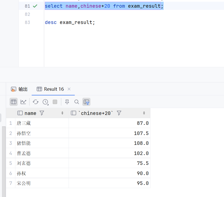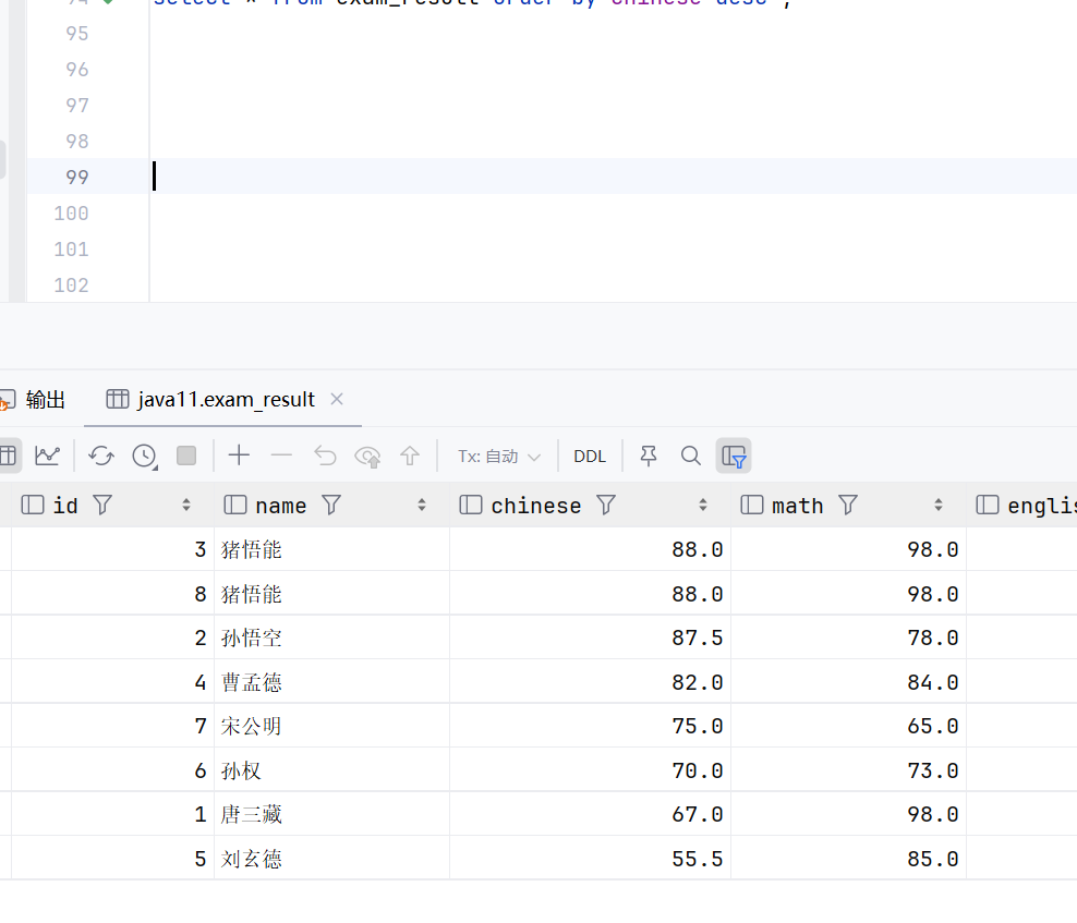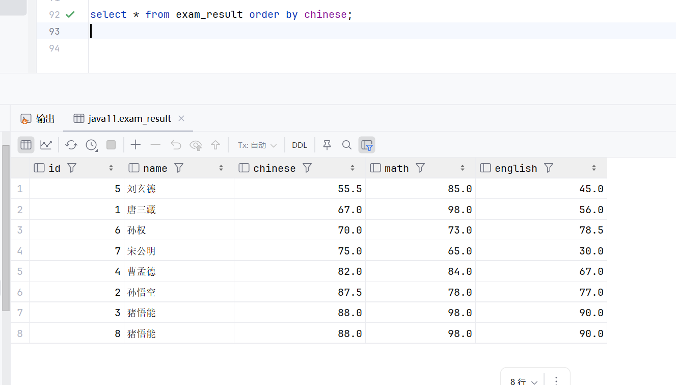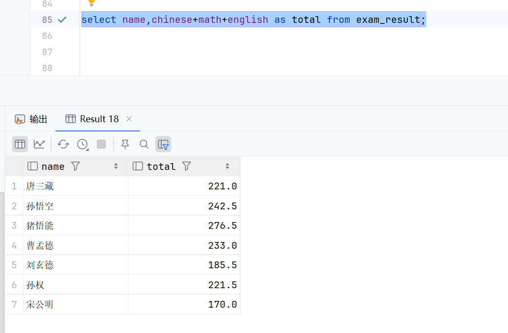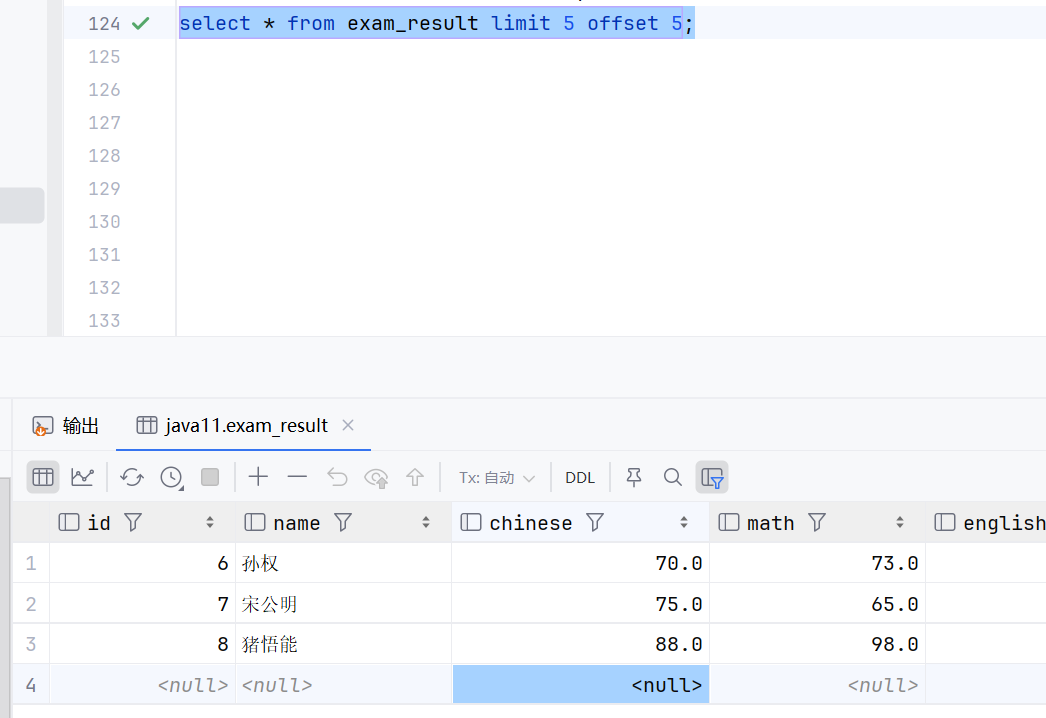 这个意思就是先执行select * from exam_result;然后在执行count