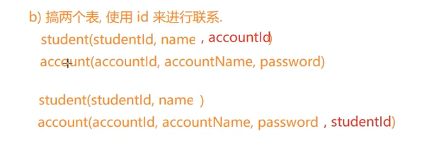 一对一:放在一起,或者直接存储另一个的id