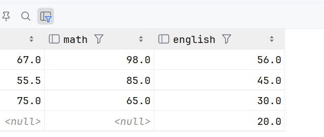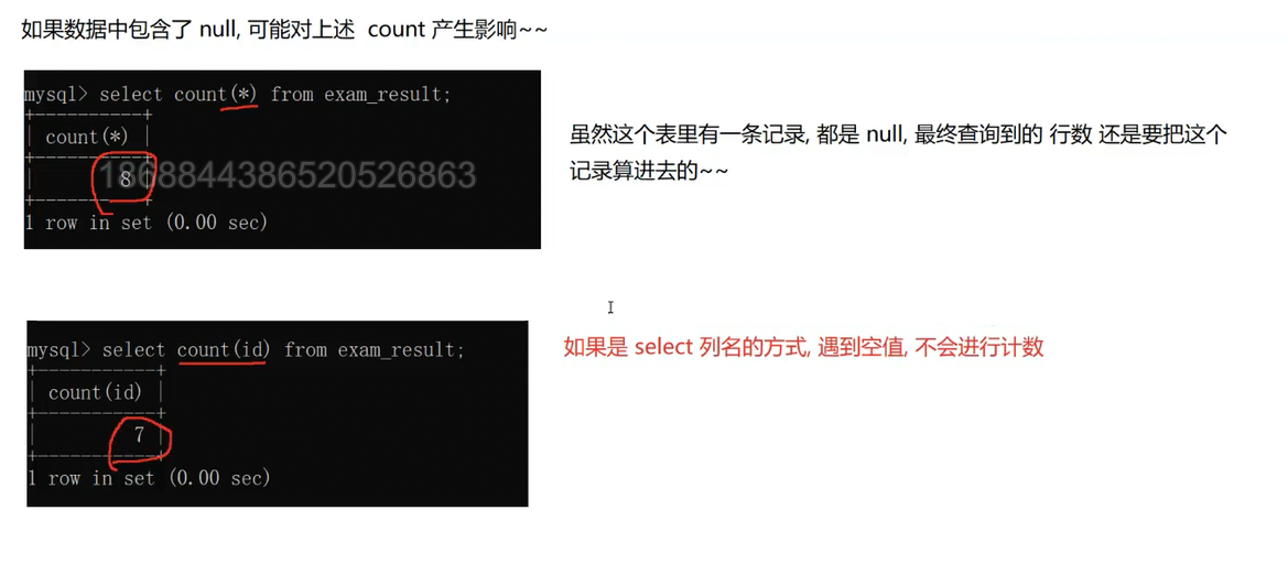 算平均成绩也会忽略null,数量不会包含它,成绩也不会包含它