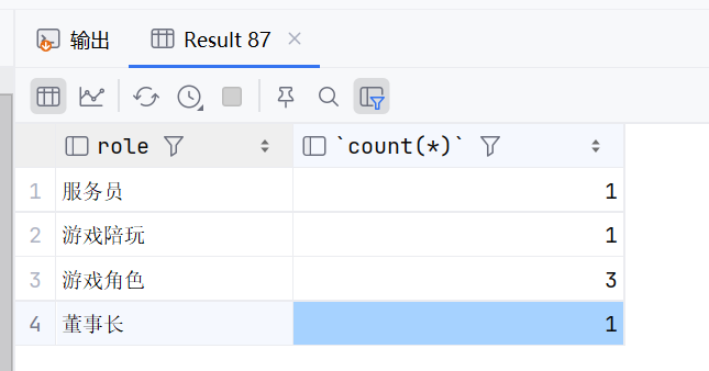 select role,count(*) from emp group by role;