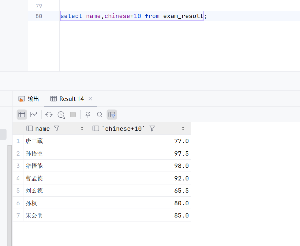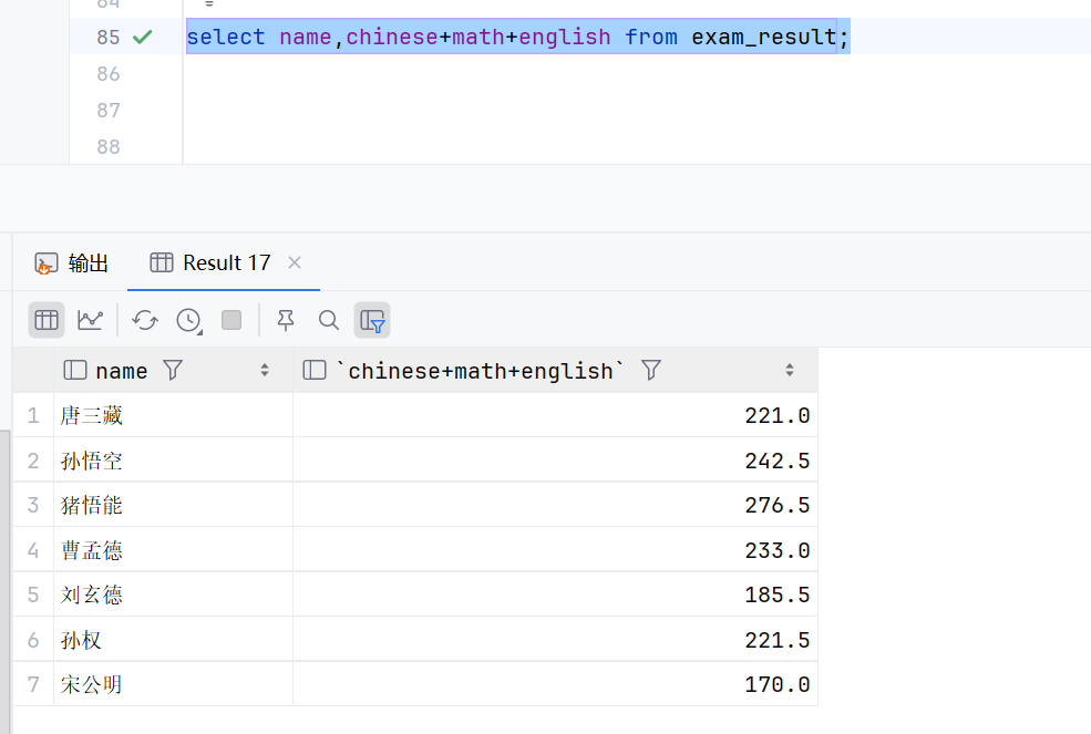 这个求得就是所有人的成绩和