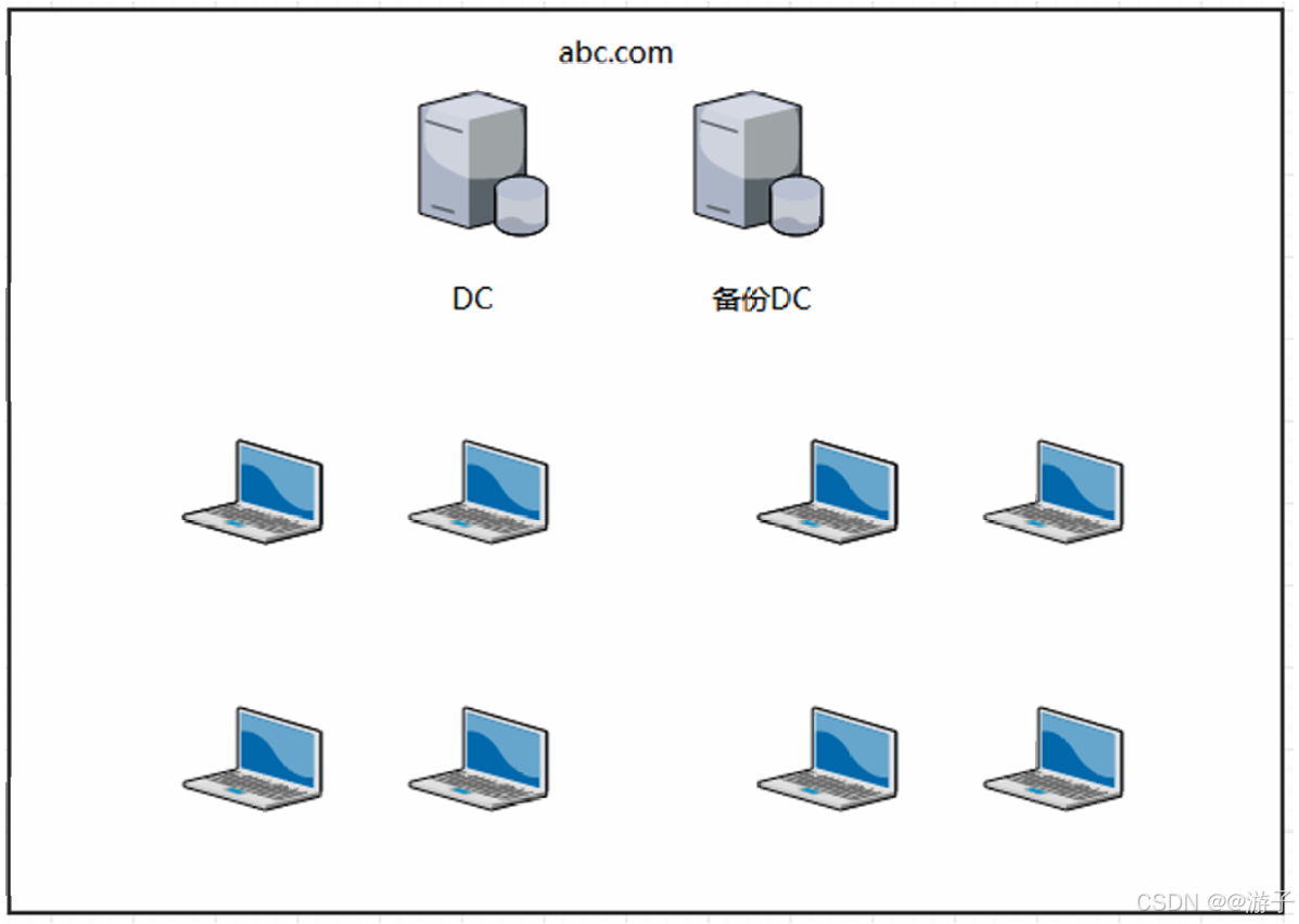 通常,在一个地理位置固定的小公司里,建立一个域就可以满足需求。在一个域内,一般要 有至少两台 域服务器,一台作为DC,另一台作为备份DC。