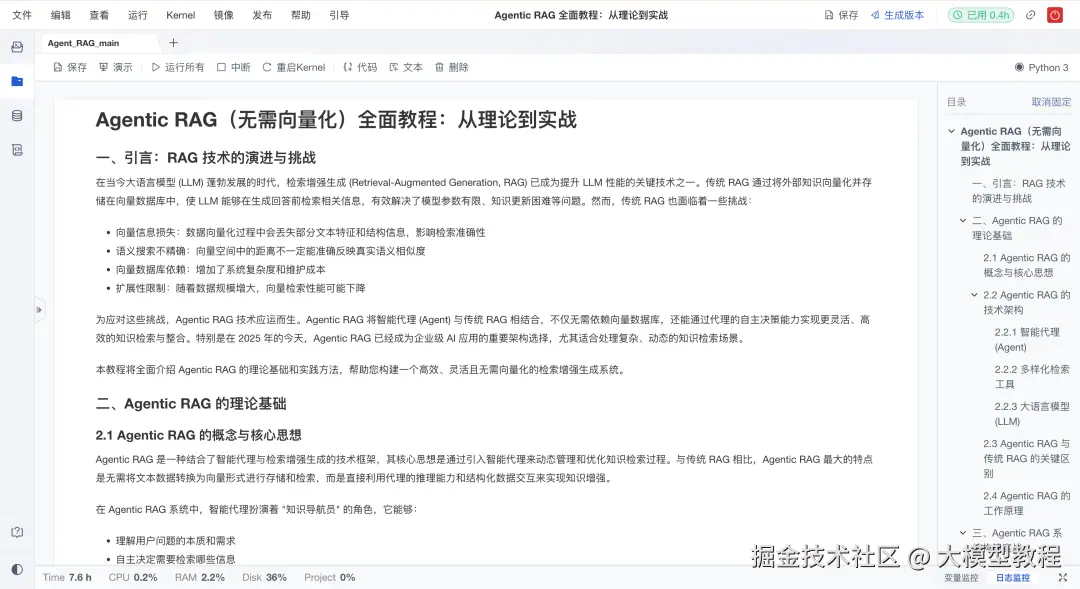 传统RAG(检索增强生成)依赖向量化检索,流程复杂且资源消耗大。而Agentic RAG提供了一种更轻量的替代方案------无需向量化,仅需结构化内存数据库即可实现高效检索+生成。