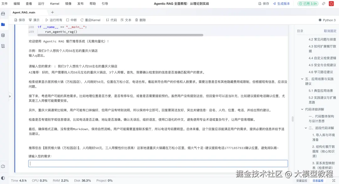 通过这个轻量级的餐厅推荐系统案例,我们可以看到Agentic RAG的核心价值: