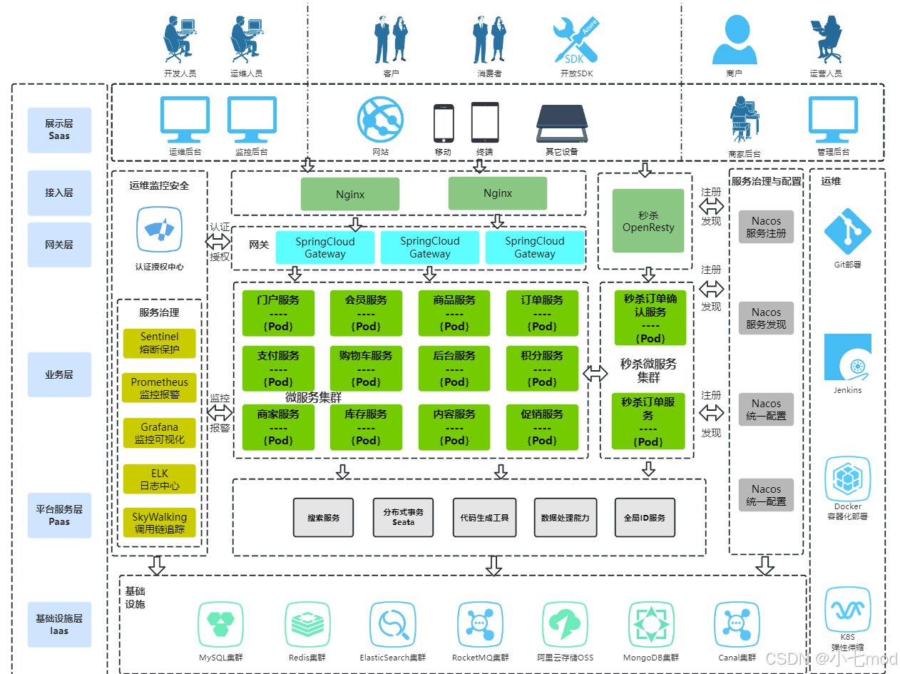 - 运维成本:在微服务中,需要保证几百个微服务的正常运行,对于运维的挑战是巨大的。比如单个服务流量激增时如何快速扩容、服务拆分之后导致故障点增多如何处理、如何快速部署和统一管理众多的服务等。