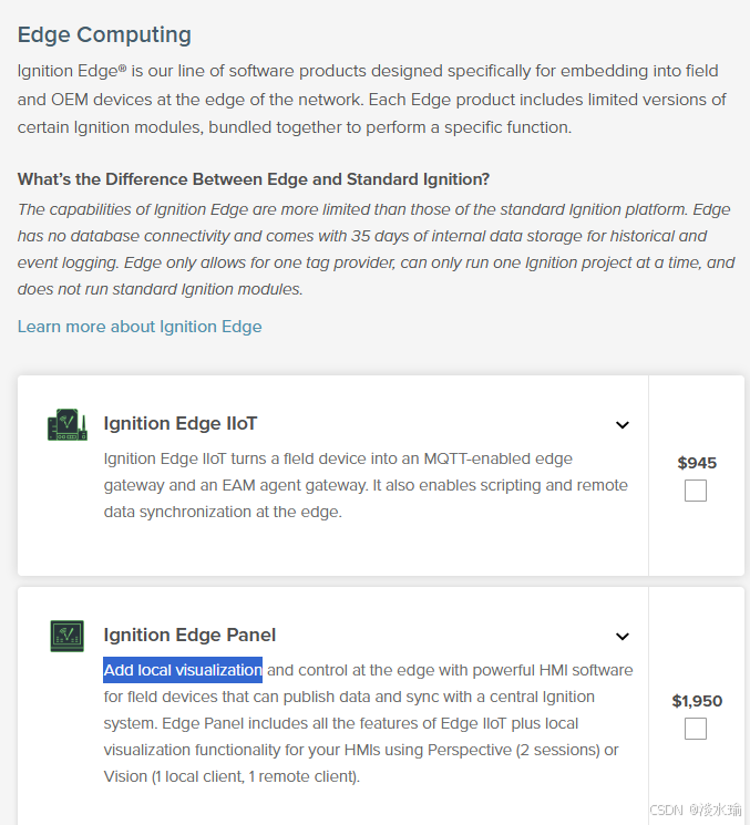 4、Edge IIoT 模块:945 USD unlimited tags `需要MQTT远程的话,必须要买这个模块`;