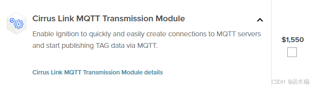 7、Cirrus Link MQTT Transmission 模块: $1550 更专业的扩展模块,提供更丰富的功能;仅需实现标准 MQTT 数据传输(如发布数据到指定主题、基本的连接管理)无需购买,但是需要在Edge Gateway 手动安装 MQTT Transmission 模块