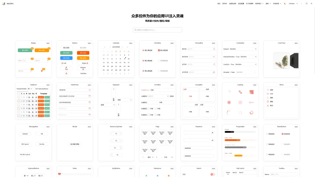 文章简介: AduSkin 是一个追求极致、永臻完美的 WPF(Windows Presentation Foundation)控件 UI 库,提供了丰富的 UI 控件和美观的界面设计,适用于开发简单漂亮的 WPF 应用程序,基于 GPL-3.0 license 开源免费。