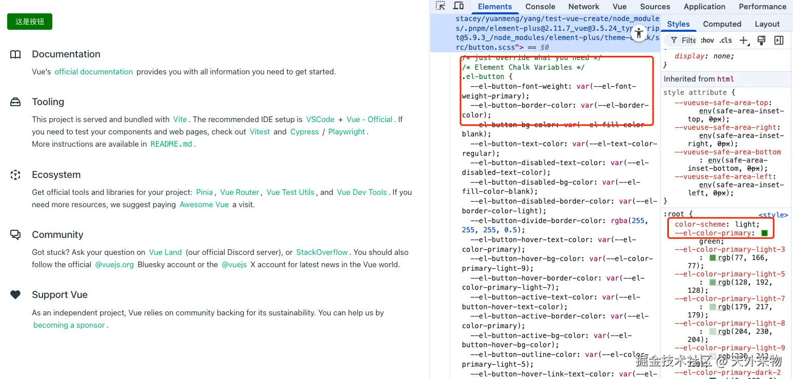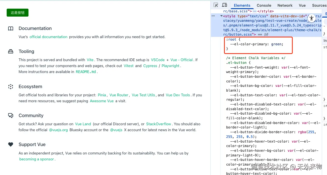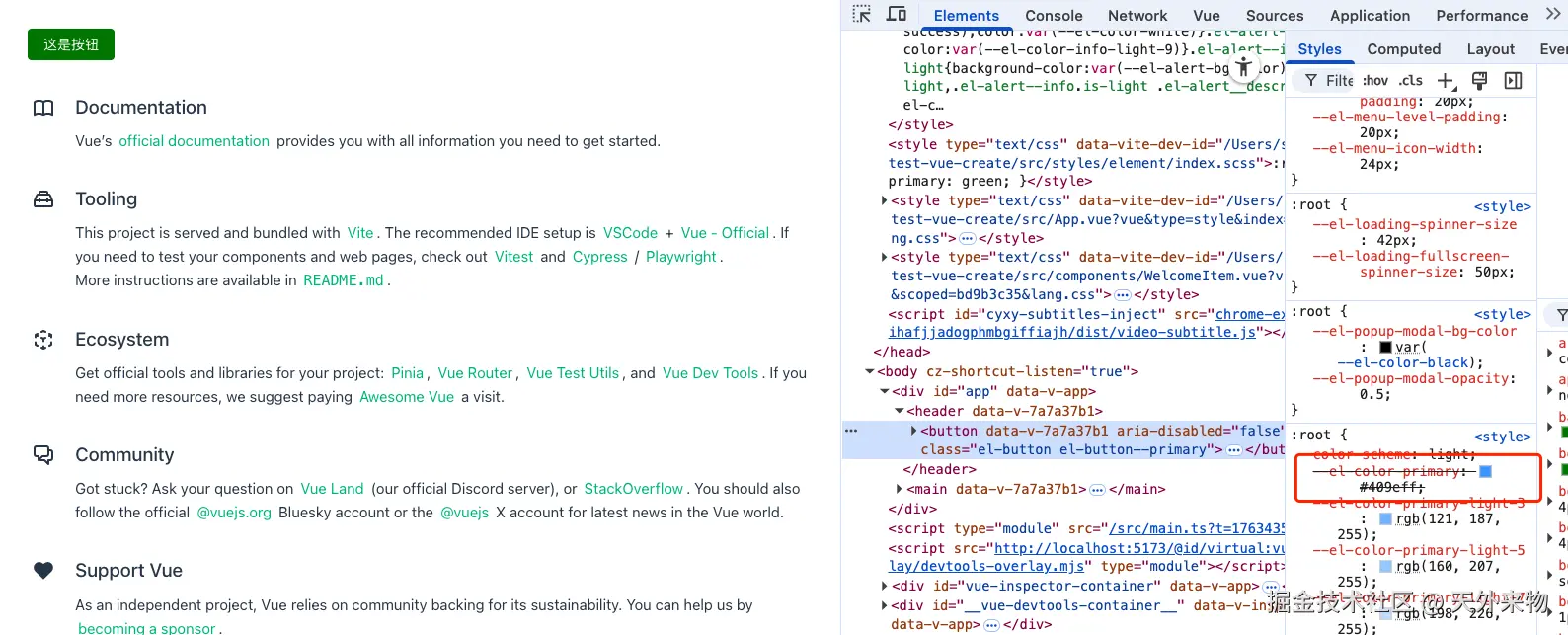 可以看到,css变量被注入到组件对应的scss文件顶部,从而让主题生效