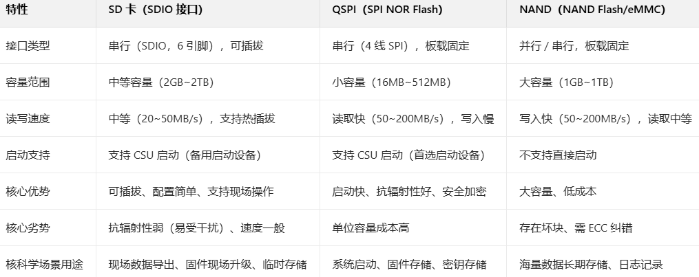 先由低速开始。低速接口支持 QSPI,NAND 和 SD。