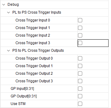 - Use STM:启用系统跟踪模块(STM),用于记录 PS 和 PL 之间的交互时序,辅助调试复杂逻辑(如核数据采集的时序问题)。