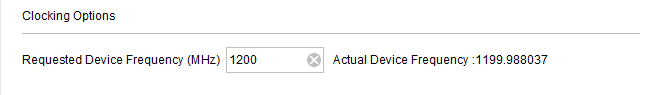 这里 IP 支持的频率范围为 100-1200MHz,主要是由于 DPLL 的 VCO 频率设置为了 2400MHz,对于 DDR 时钟只能进行整数分频,因此最大为 1200MHz