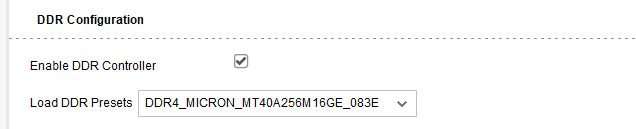 PS 硬件配置的是 4片 MICRON 的 MT40A512M16LY-062E 型号的 DDR4。可以在载入 DDR 预设时选用相近的这个型号,方便在下面载入参数,再根据手册中进行对应的修改,修改过参数后,这里会变成 custom。