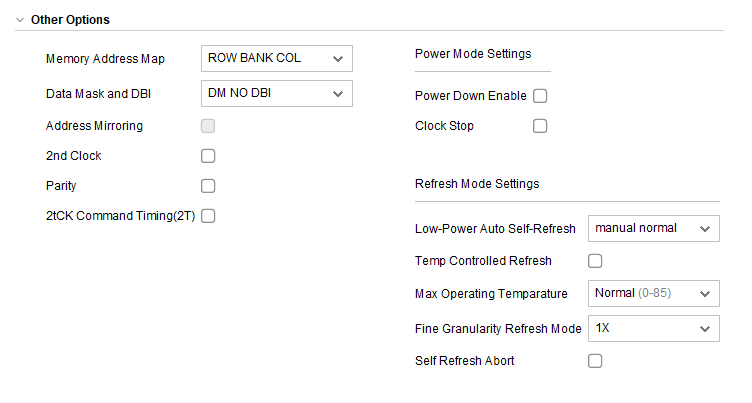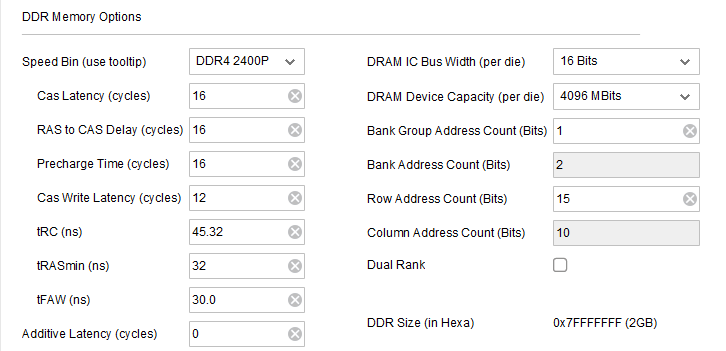 单片 DDR 是 16-bit,4 片构成 64-bit 数据位宽,硬件上直接用 DDR 芯片所以选择 components