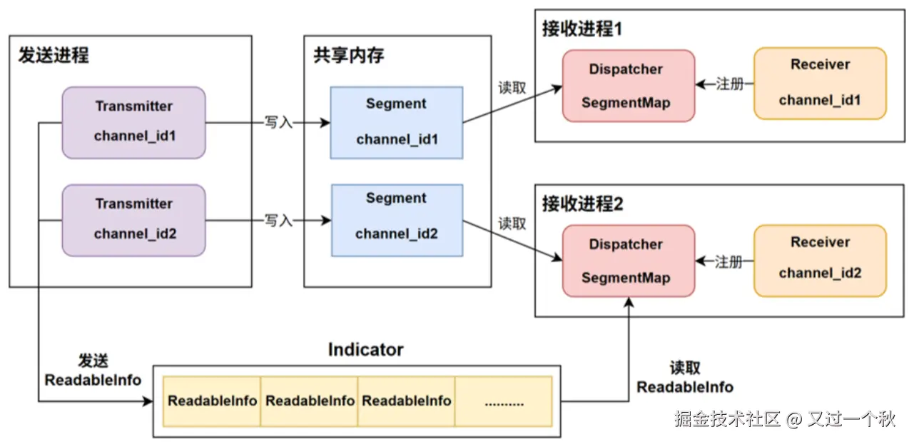 - Transmitter会根据channel_id_作为key生成一块Segment共享内存