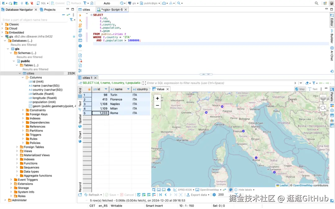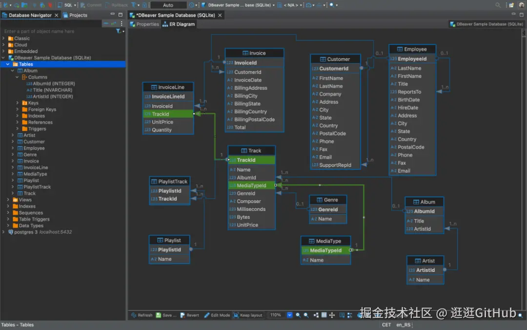 在数据库连接方面,DBeaver 主要基于 JDBC 驱动,同时集成了一系列开源库来处理特定功能。使用 SSHJ 库实现安全的 SSH 连接,Apache POI处理 Excel 文件,JFreeChart** 生成图表,JTS 处理空间数据等。