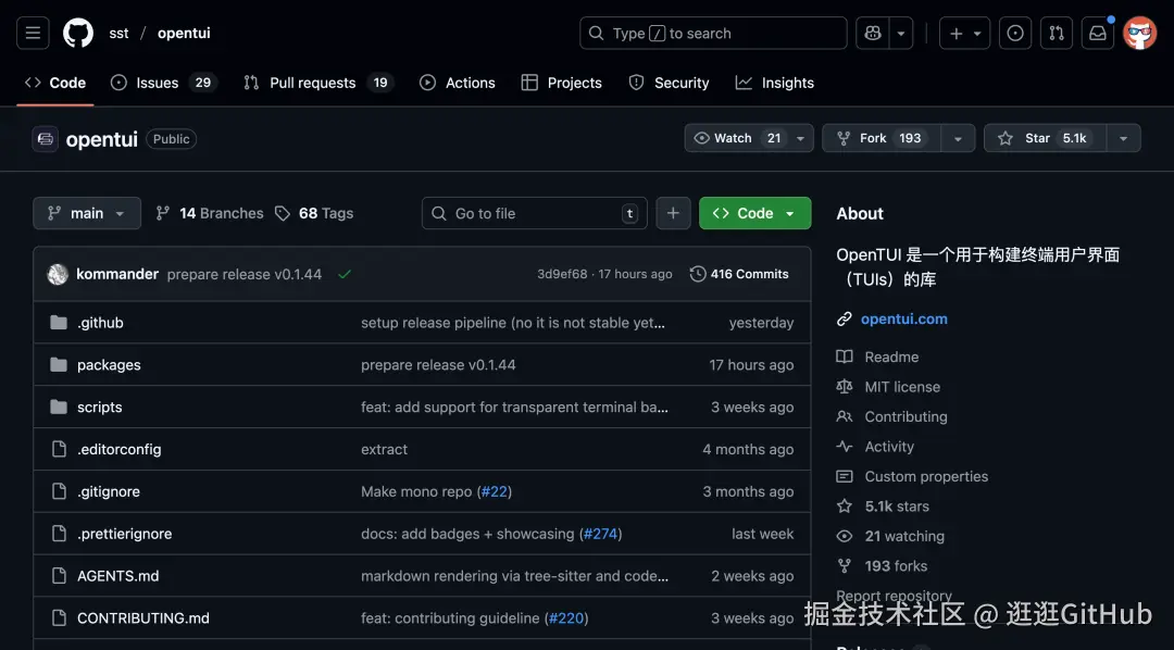 这是个 TUI 的 TypeScript 库。注意这个项目还在开发阶段,没准备好用于生产呢。与其他 TUI 库不同,OpenTUI 强调底层控制能力,让开发者能够精细调整界面行为。