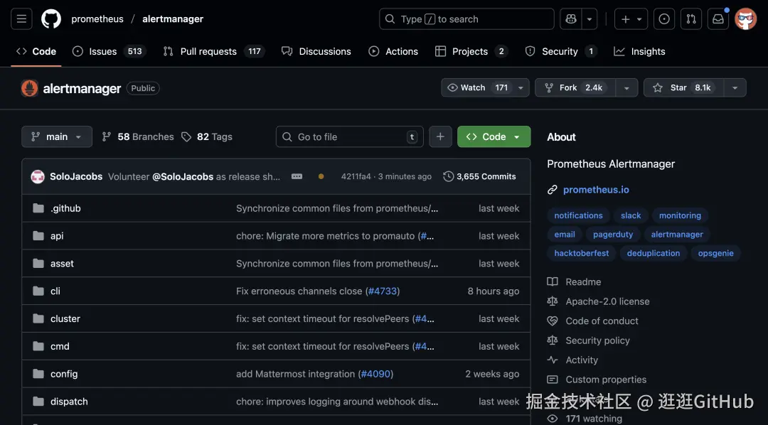 这个开源项目是一个专为处理监控警报而设计的开源工具,有 8000 的星星。它接收来自 Prometheus 等监控系统发送的警报,然后进行一系列智能处理。