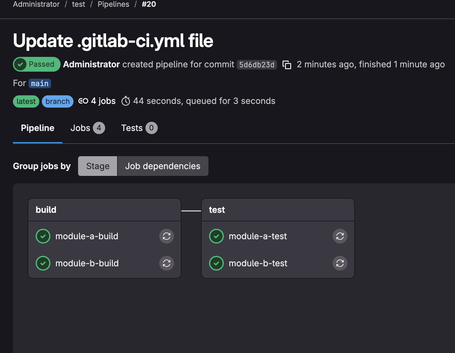 needs: ["module-a-build"],在执行module-a-build 的时候执行当前 job