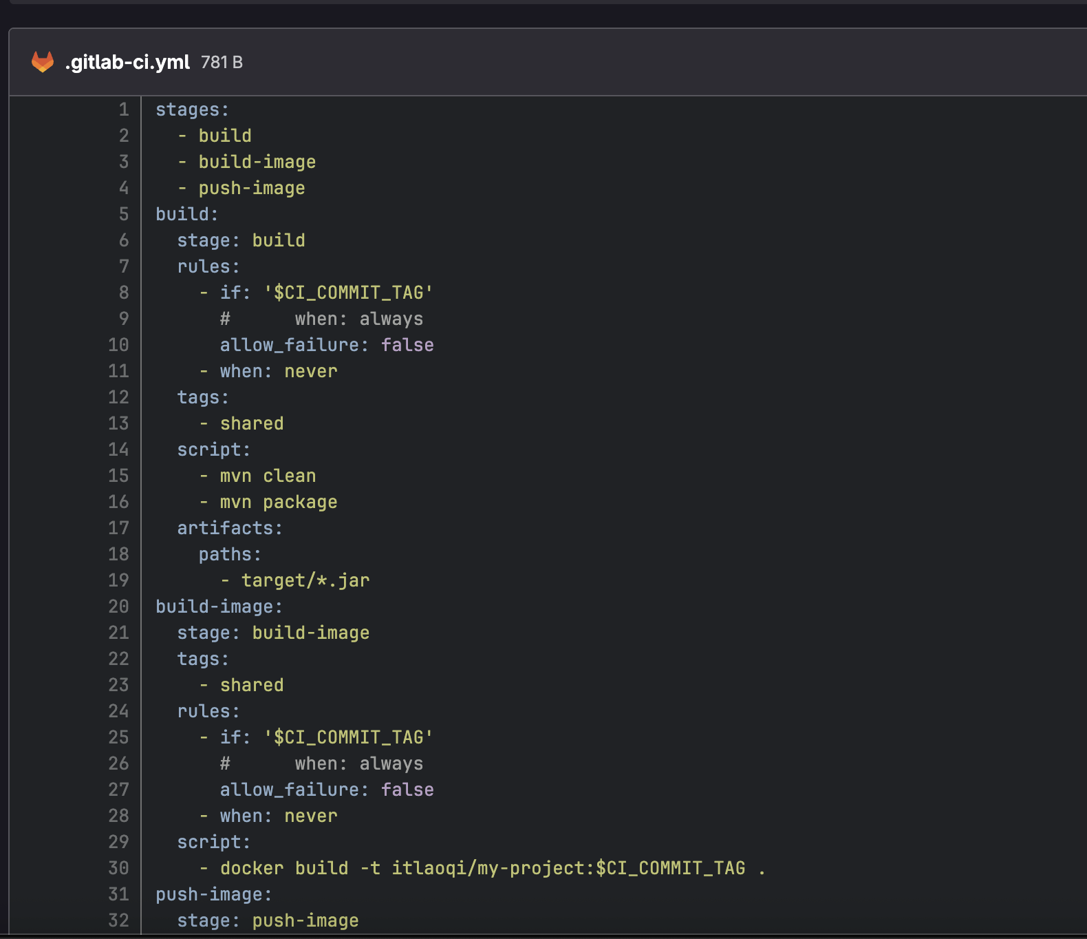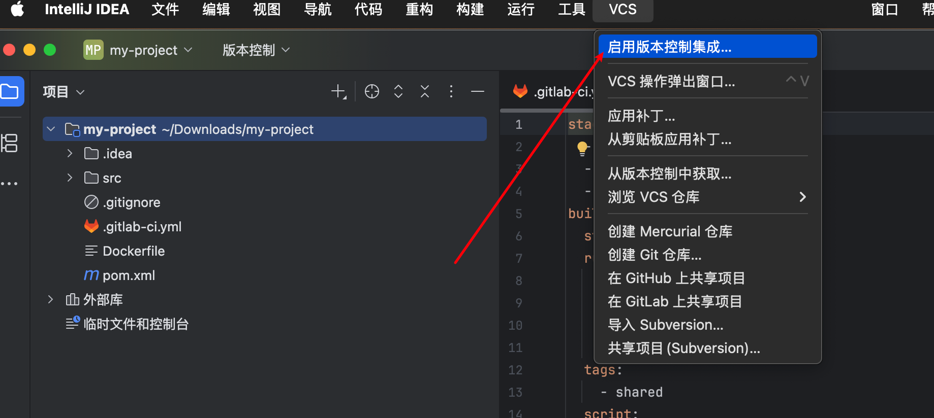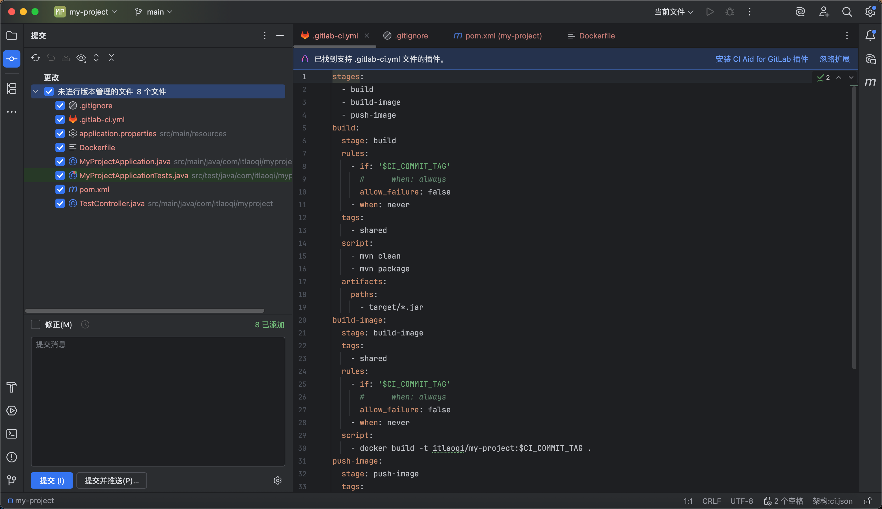 在项目根目录创建 ci 文件.gitlab-ci.yml,在文件中指定构建,测试和部署脚本