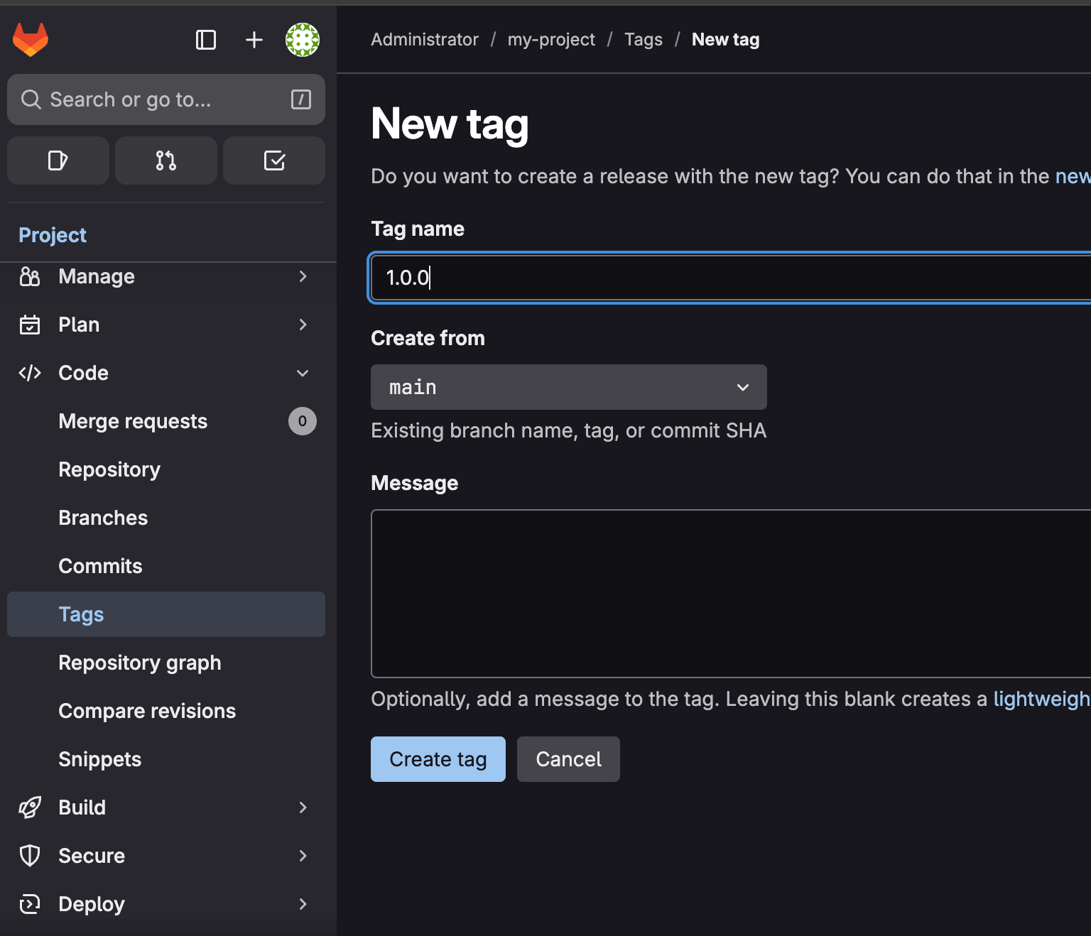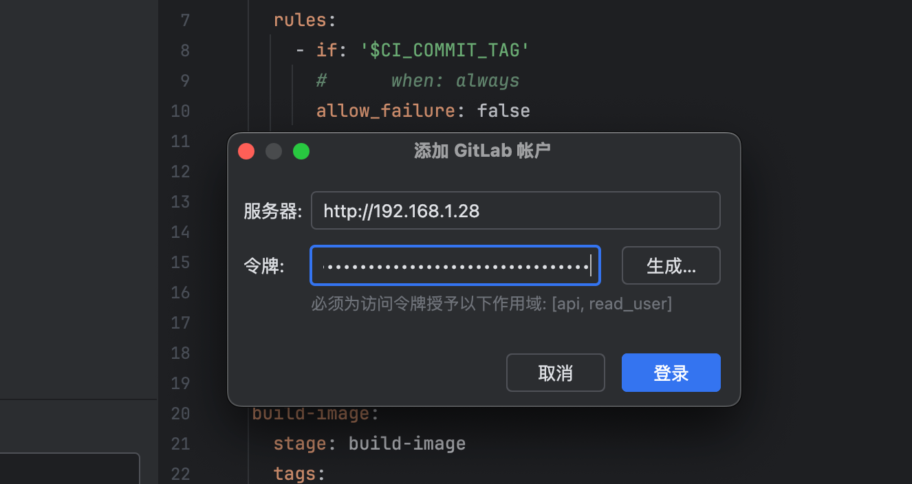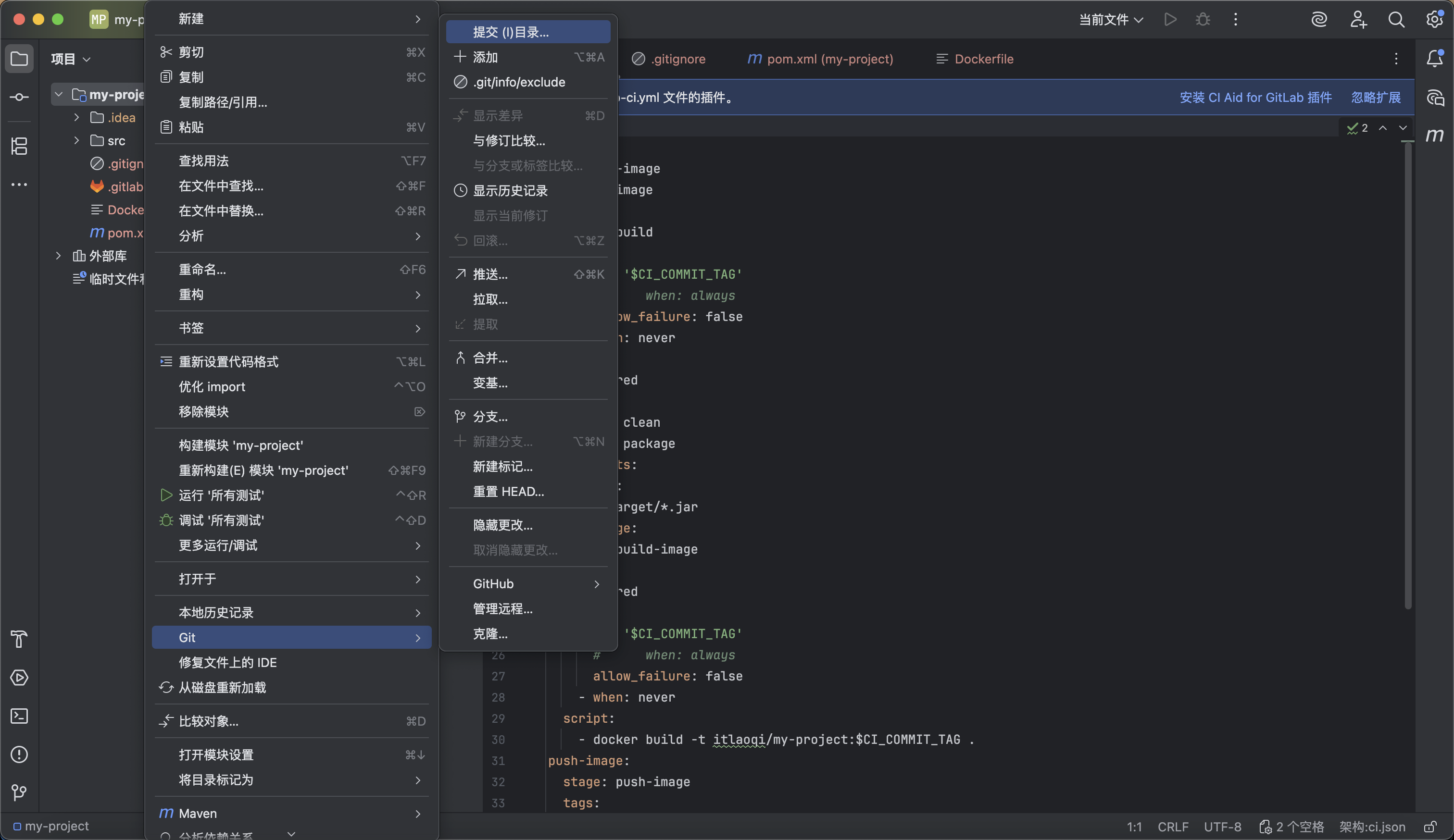 在项目根目录创建 ci 文件.gitlab-ci.yml,在文件中指定构建,测试和部署脚本
