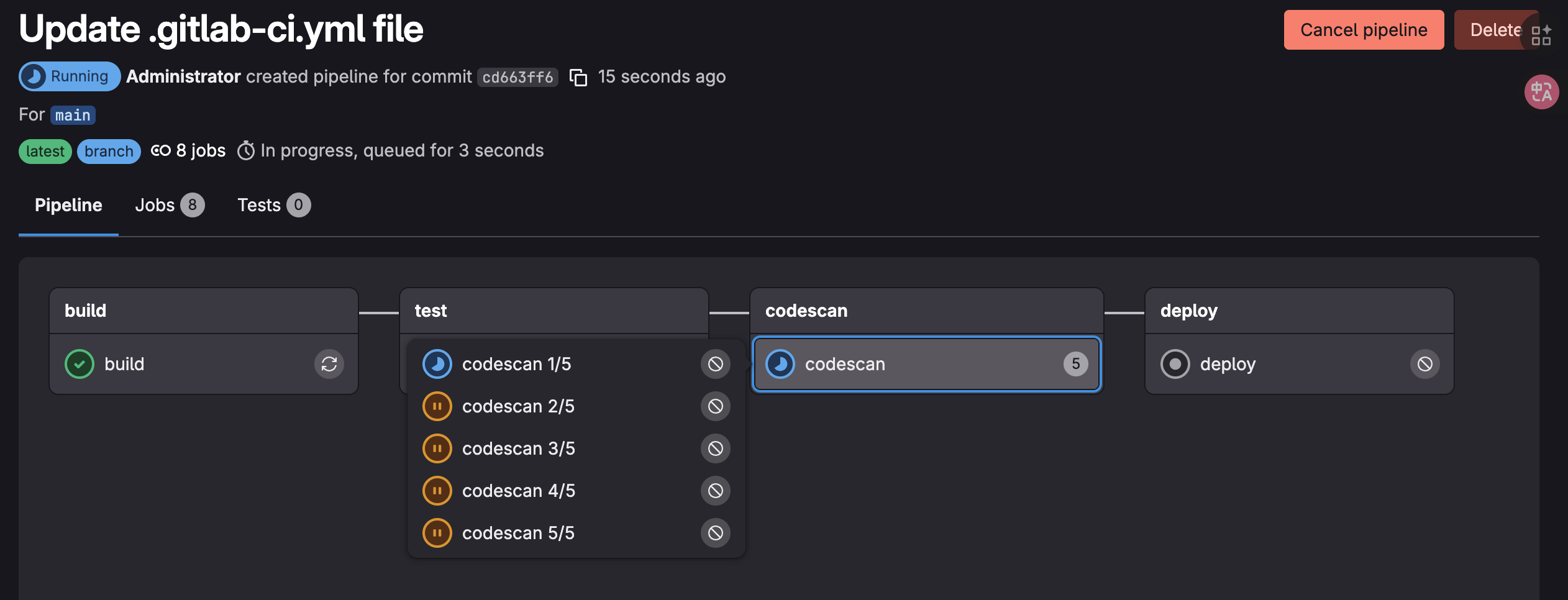 并行阶段,可无序执行作业,无需按照阶段顺序运行某些作业,可以让多个阶段同时运行。