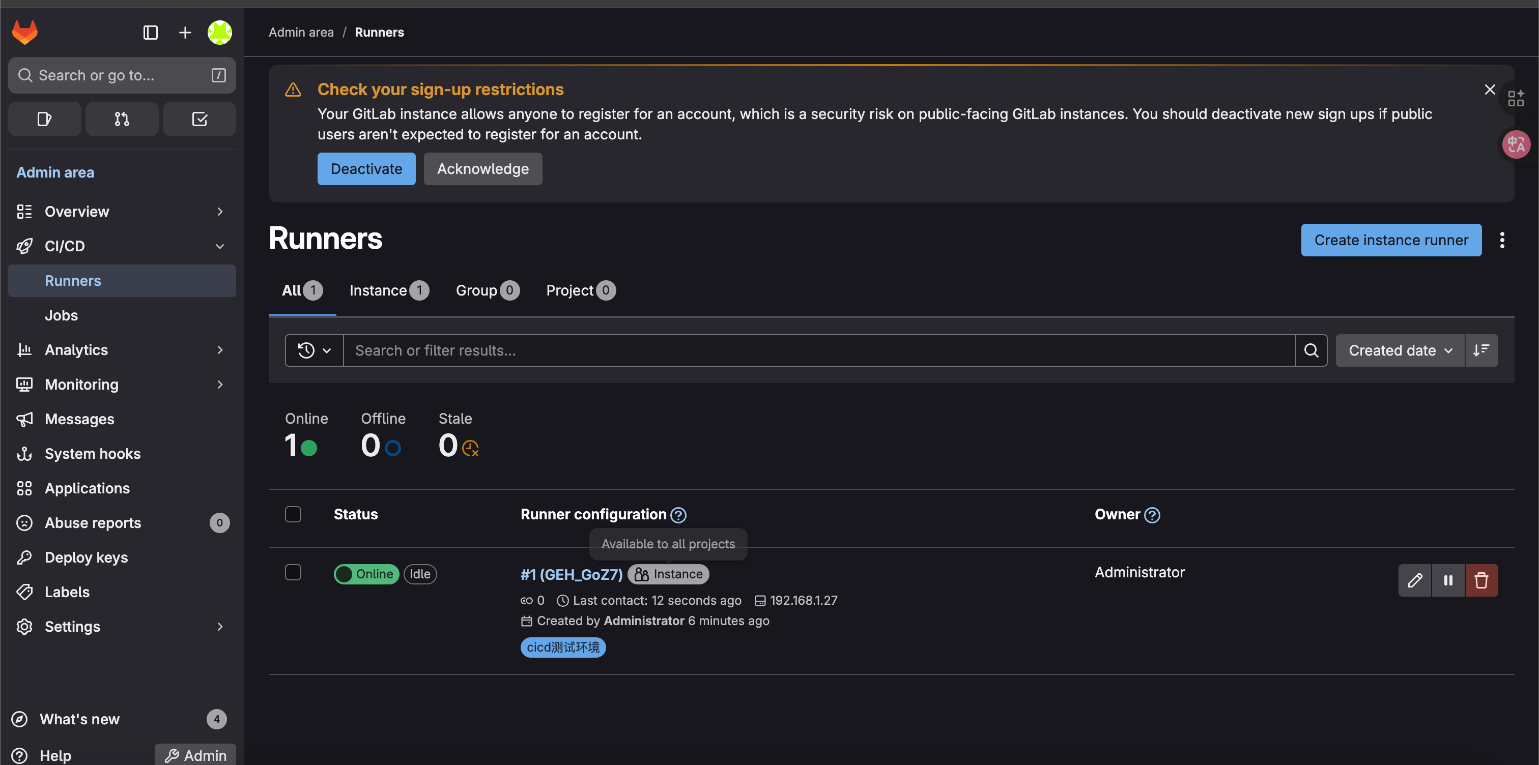 - 192.168.1.27 - Gitlab Runner (已安装 Docker)