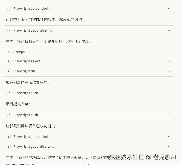 Claude按照指令一步步的将表单内容填写完善,填写结果完全符合预期,非常好!