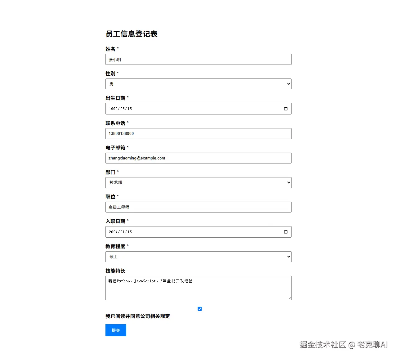 请帮我填写这个员工登记表单(file:///path/to/complex-form.html),