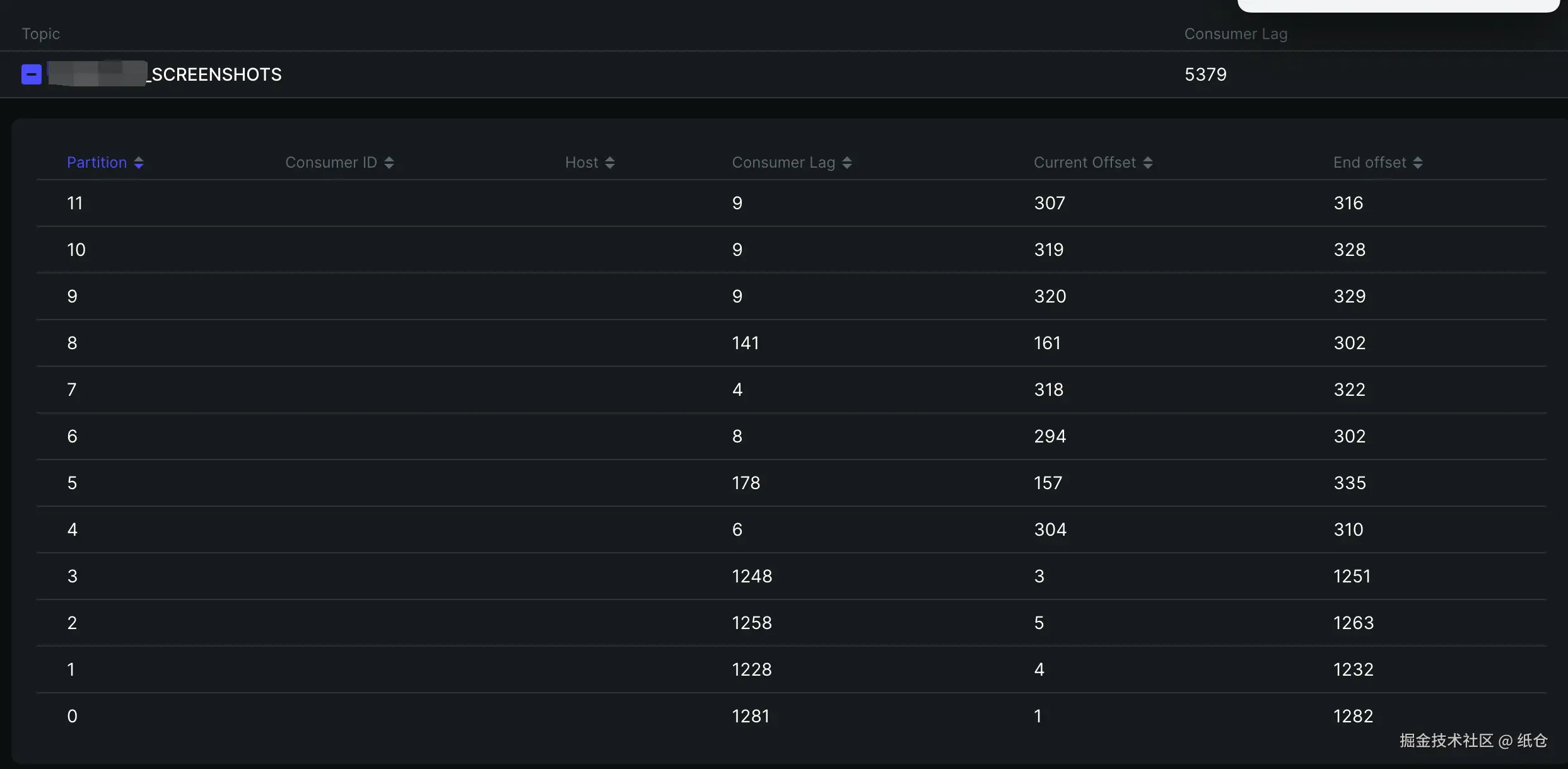 这真没办法,都找上门来了。只能跟着查一下,早点解决早点睡觉。然后我就上 Kafka 面板一看:最初的4个分区已经积压了 1200 条,后面新加的分区也开始积压了,而且积压的速度越来越快。
