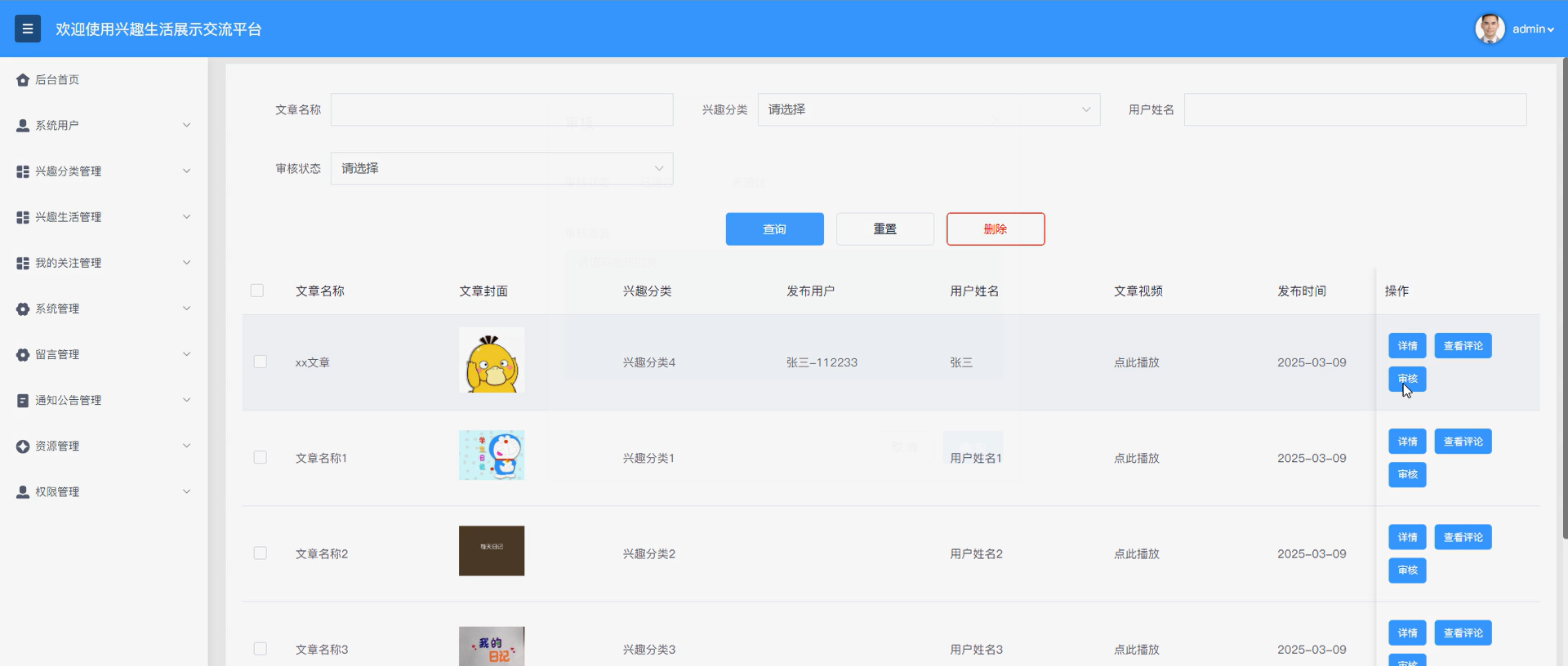 内容管理:审核和管理用户发布的兴趣生活内容,包括文章、图片和视频。