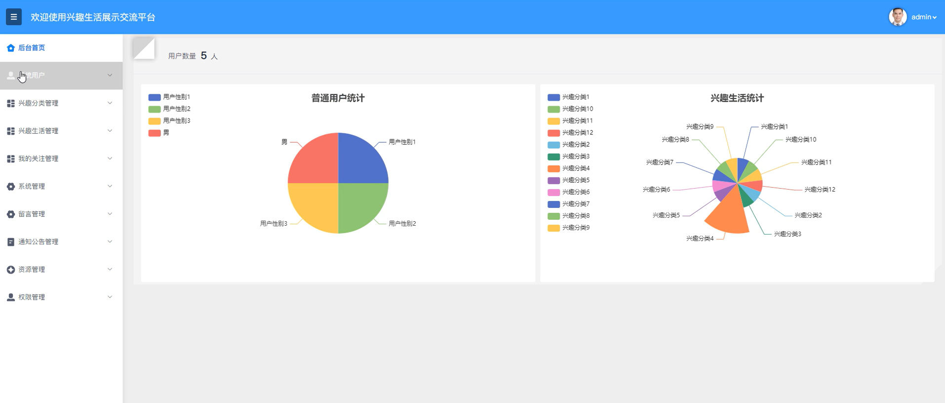 数据统计与分析:生成用户活跃度、内容浏览量和互动数据报表,为平台运营提供支持。