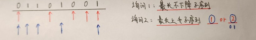 因为题目给出的是 01 串,那么最长上升自序列的长度不是 1 就是 2(01)