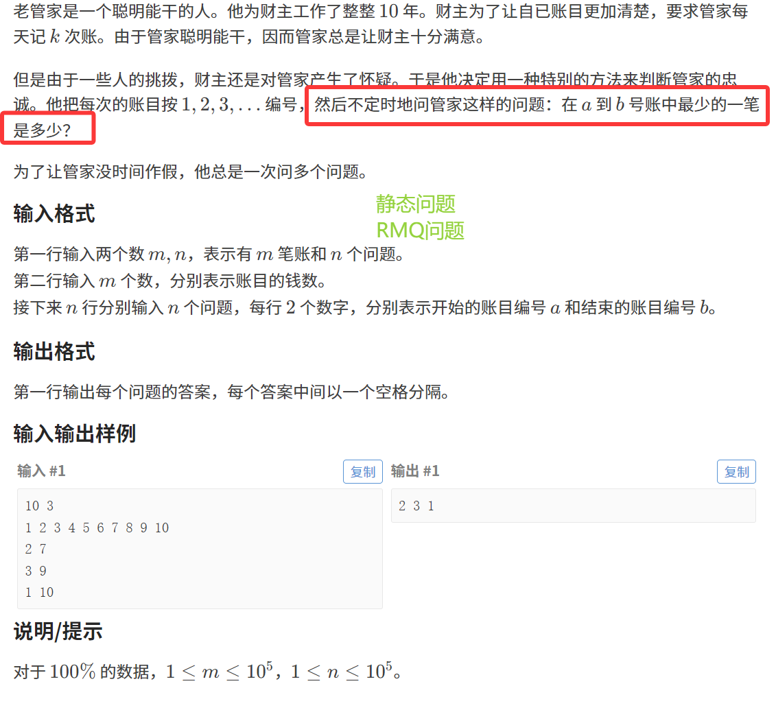 第一道练习题,先给大家热热身。这道题就是一个简单的ST表的模板题