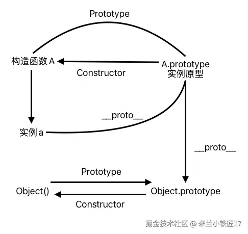 prototype指向的是调用该函数创建的实例的原型,也就是例子中a1,a2的原型。 每一个对象(null除外)创建的时候,都会关联另外一个对象,这个对象就是原型,每个对象都会从原型"继承"属性
