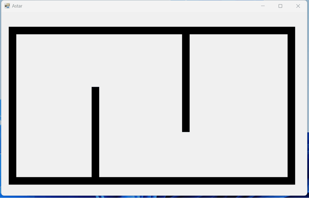 下面是A*算法的Winform实现结果,运行程序后,任意点击一个位置,该位置作为开始点,再点击一个位置作为结束点,然后程序会自动从开始点向外搜索,直到搜索到结束点后停止,然后取其中距离最短的路径作为最优路径;