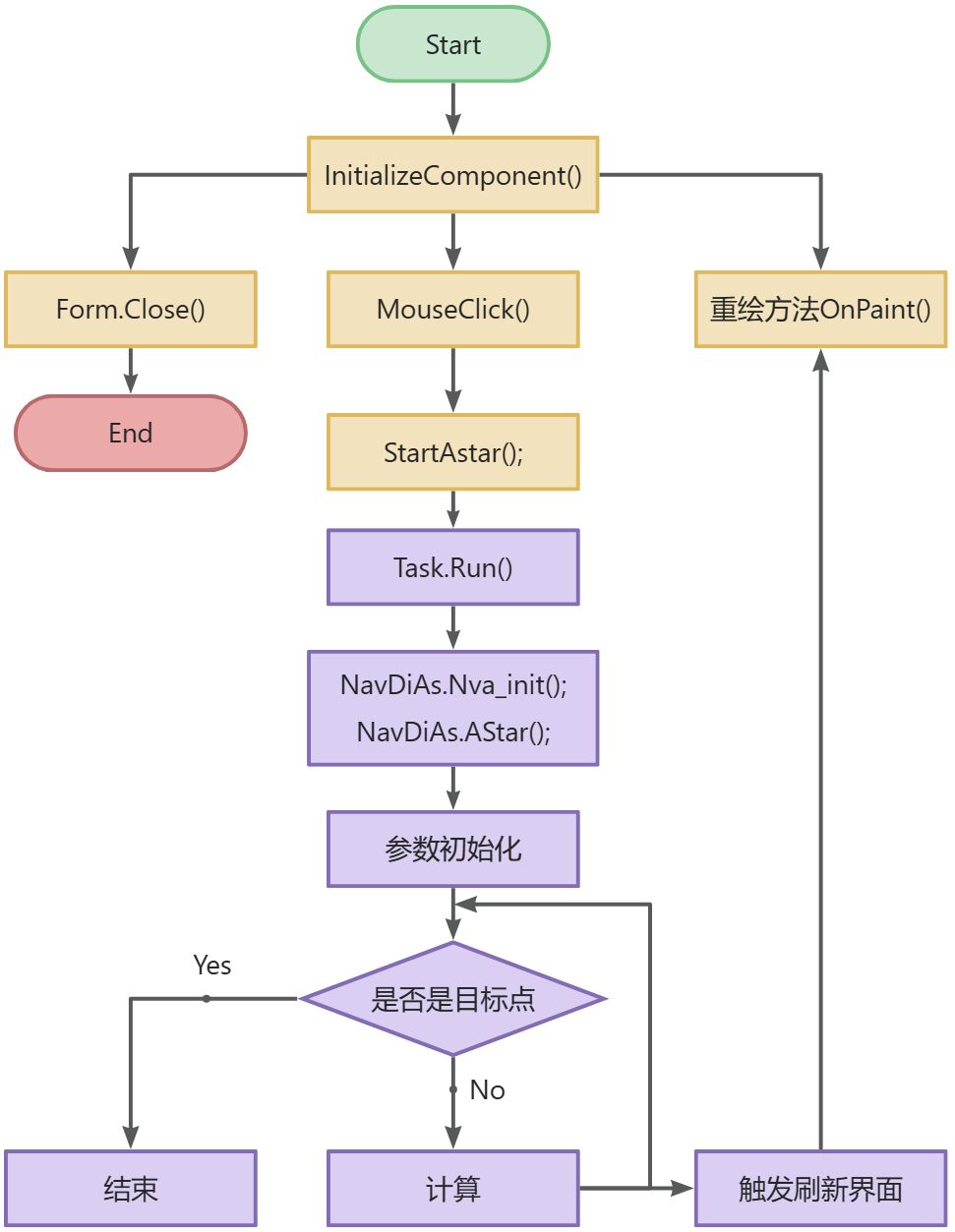 根据上面对Astar算法的分析,进行C#程序设计,程序流程图如下;