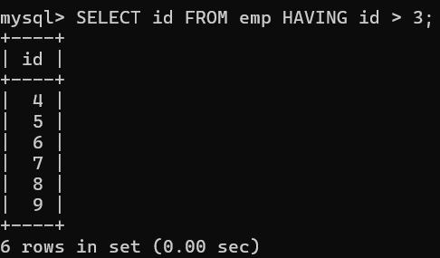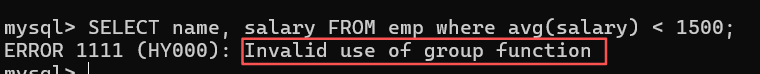 - 由于MySQL的功能拓展,group by子句 和having子句都可以使用select子句定义的列别名。【注意:其他数据库不支持,这样的写法只有MySQL数据库支持,不具有可移植性】