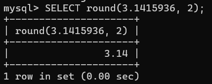 SELECT round(3.1415936, 2); #round(原始数值,限定位数)