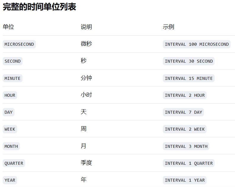 | 随机数 | RAND | RAND() 或 RAND(seed) |
