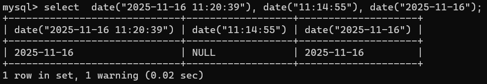 SHOW WARNINGS;