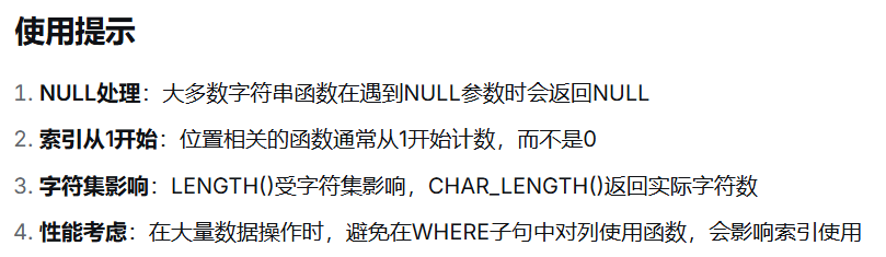同样的,对于字符串的处理一般会在后端或者前端就做好了,++通常不会在数据库阶段进行处理++。