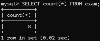 -- 1.查看exam表中的总记录数