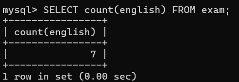 SELECT count(english) FROM exam; # 排除了张三的null